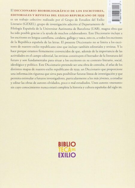 Diccionario biobibliográfico de los escritores, editoriales y revistas del exilio republicano de 1939 (Biblioteca del Exilio, Col. Anejos nº 30)