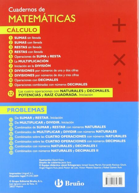 12 Las cuatro operaciones con naturales y decimales. Potencias y raíz cuadrada. Iniciación (Castellano – Material Complementario – Cuadernos de Matemáticas)