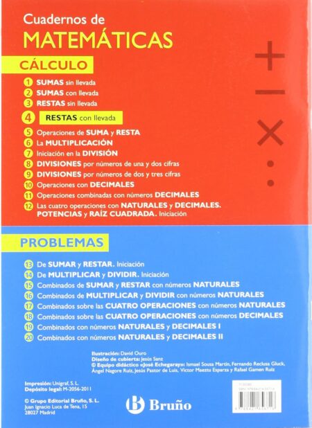 4. Escuela de genios. Cuadernos de refuerzo. Educación Primaria. A partir de 7 años. Matemáticas: restas llevando. Problemas de sumas y restas llevando – 9788444151304