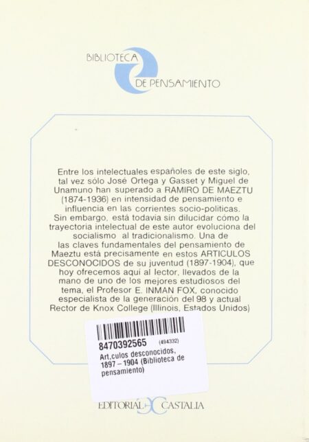Artículos desconocidos (1897-1904) . (BIBLIOTECA DE PENSAMIENTO)