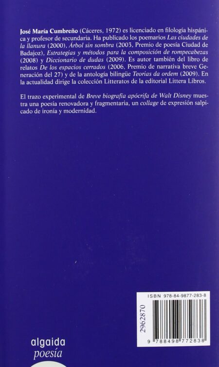 Breve biografía apócrifa de Walt Disney (ALGAIDA LITERARIA – POESÍA – Premio de Poesía Alegría)
