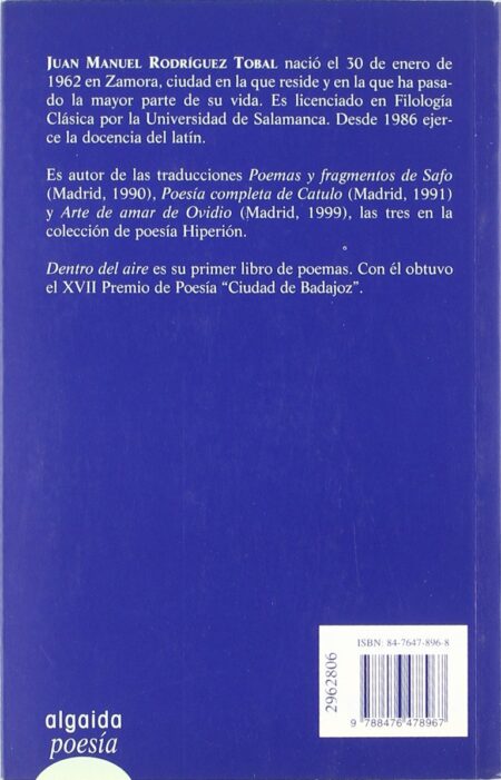 Dentro del aire (ALGAIDA LITERARIA – POESÍA – Premio de Poesía Ciudad de Badajoz)