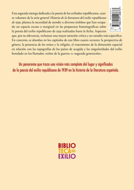 La poesía del exilio republicano de 1939. II: Género, mitos y religión, espacios, exilio heredado. Serie “: 64 (BIBLIOTECA DEL EXILIO – SERIE MENOR)