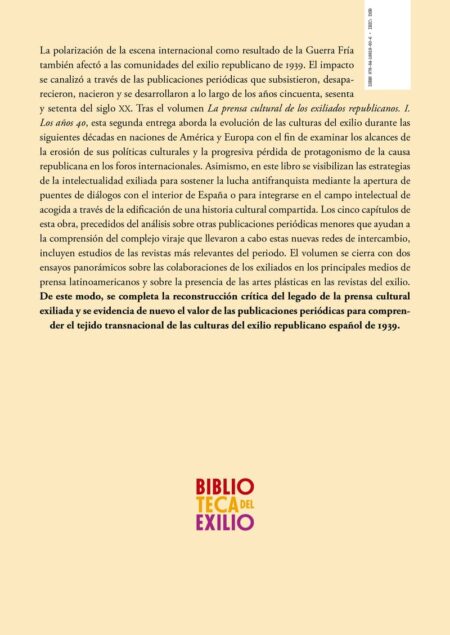 La prensa cultural de los exiliados republicanos. II: Los años 50-70: 41 (BIBLIOTECA DEL EXILIO – SERIE MAYOR)