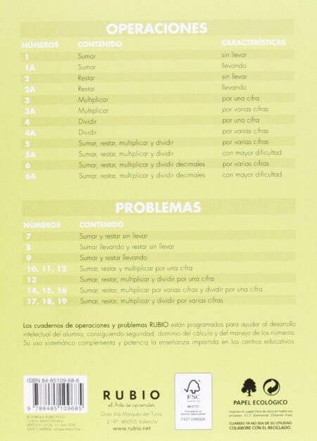 Problemas 15 RUBIO | Sumar, restar, multiplicar por varias cifras y dividir por una cifra