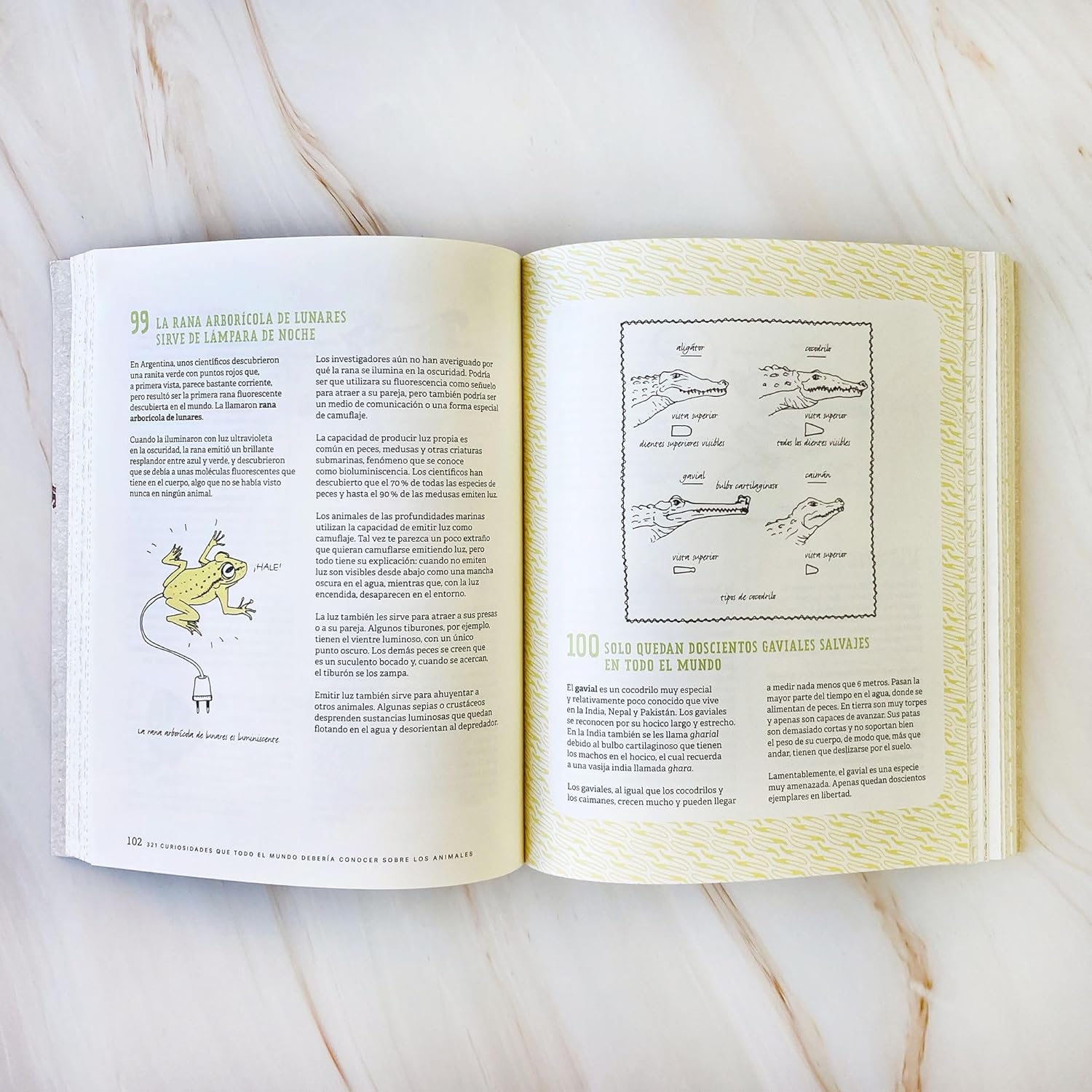Estas 321 curiosidades sorprendentes sobre animales son un maravilloso compendio de información, datos y sorpresas. Un recorrido por la asombrosa inteligencia, la capacidad de amar, las costumbres, el lenguaje y los lazos familiares de los animales que revela hechos tan asombrosos como que los gorilas construyen una nueva cama en el suelo cada noche o que el colibrí zunzuncito mide unos 5 cm y pesa tan solo 3 gr. O que los elefantes solo duermen 2 h al día y las ballenas jorobadas recorren cada año unos 25 000 km en busca de comida.Mathilda Masters y la ilustradora Louize Perdieus son las creadoras de este variado y entretenido libro que nos recuerda que el conocimiento puede ser algo muy atractivo y divertido y que la lectura puede convertirse en una actividad adictiva.