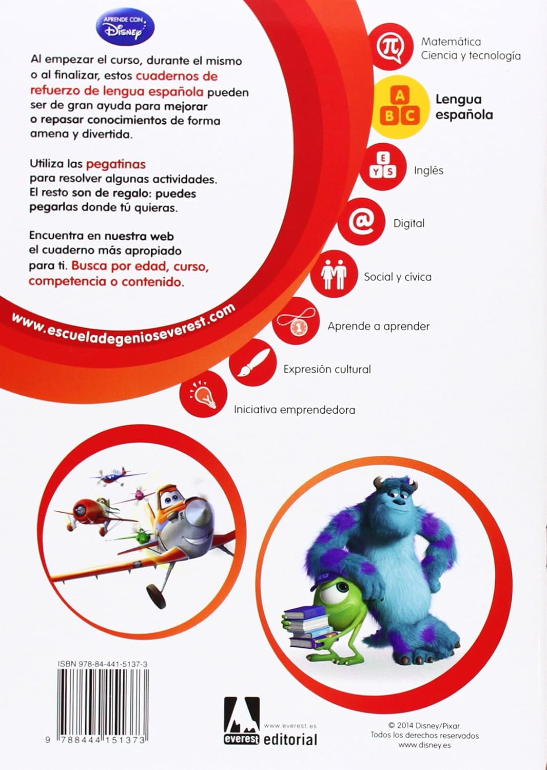 El objetivo de estos libros es que los niños cuenten con un apoyo importante, para reforzar y repasar durante todo el año los conceptos aprendidos en el colegio fundamentalmente en las áreas de matemáticas, gramática y comprensión lectora. Este quinto cuaderno de refuerzo de Lengua española, sirve para afianzar la lectura y la comprensión de un texto. La comprensión es el proceso de elaborar el significado a través de aprender las ideas relevantes de un texto y relacionarlas con las ideas o conceptos que ya tienen un significado para el lector. El lector necesita reconocer las letras, las palabras, las frases. Pero no siempre que se lee, se logra comprender el mensaje que encierra el texto, es posible incluso que se comprenda de manera equivocada. Aprenderemos a leer y comprender, ¡con tus personajes Disney favoritos!