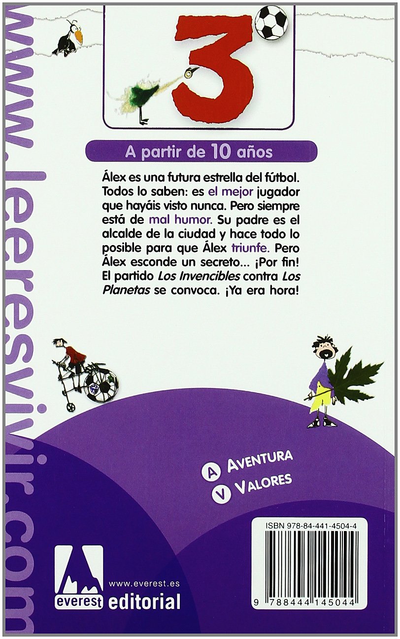 Álex es una futura estrella del fútbol. Todos lo saben: es el mejor jugador que hayáis visto nunca. Pero siempre está de mal humor. Su padre es el alcalde de la ciudad y hace todo lo posible para que Álex triunfe. Álex, esconde un secreto que en este libro solo podremos intuir. Aunque no lo reconozca, se está haciendo muy amigo de Gabriel y Blanca, aunque su mejor amigo es Daniel, el que soporta todas sus groserías Amaya se une al grupo, ella quiere trabajar como futbolista, sin embargo siempre está en el banquillo porque su madre se lo ha prohibido. ¡Por fin! El partido Los Invencibles contra los Planetas se convoca. ¡Ya era hora!