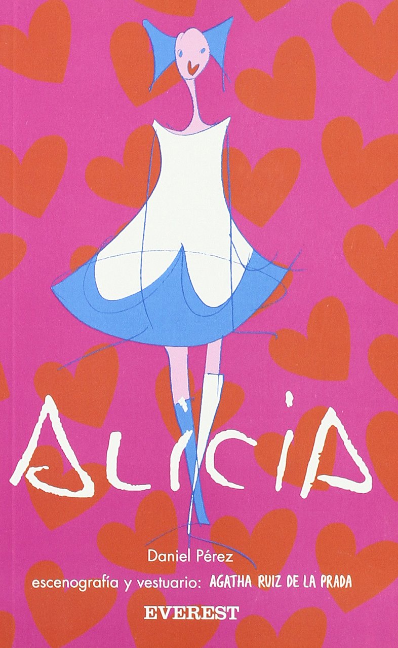Basado en el cuento Alicia en el país de las maravillas, escrito en 1865 por Lewis Carroll, en esta ocasión, la obra se traslada al mundo del teatro para presentarnos a una nueva Alicia rodeada de los famosos personajes de la obra original, pero que protagoniza situaciones diferentes. Así Alicia se duerme con un libro en las manos y cae por un pozo. Se encuentra entonces con el conejo. Su intención es ir a una fiesta y Alicia le sigue. Se da cuenta en ese momento de que está en un lugar diferente, que no ha conocido hasta entonces. Ella no distingue entre la vida real y el sueño, aunque se da cuenta de que si despierta todo ese mundo mágico desaparecerá. El lenguaje también es novedoso: versos alocados que imprimen a la representación un ritmo pegadizo. Pero además, nuestra Alicia teatral presenta otra singular característica que le hace más moderna si cabe, y es que va vestida y se mueve en un mundo creado gráficamente por la diseñadora ÁGATHA RUIZ DE LA PRADA, que confiere al ambiente mágico de Carroll más color y diversión. Ilustración no convencional, a partir del montaje teatral que se llevó a cabo de la mano de la compañía Replika y que paseará la obra por toda España. Sin duda, un producto ideal para representar, contemplar y leer.