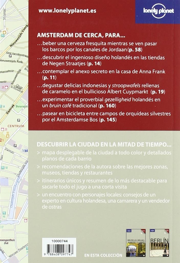 Toda la información que se necesita para beber una cerveza mientras se ven pasar los barcos por los canales de Jordaan, descubrir el anexo secreto en la casa de Anna Frank, experimentar el proverbial gezelligheid holandés en un bruin café tradicional, pasear en bicicleta entre campos de orquídeas silvestres por el Amsterdamse Bos…Incluye:-Mapa desplegable de la ciudad a todo color y detallados planos de cada barrio-Recomendaciones de la autora sobre las mejores zonas, museos, tiendas y restaurantes-Itinerarios únicos y resumen de los más destacable para sacarle todo el jugo a una corta visita. NOTA: El libro no está en español, sino en inglés.