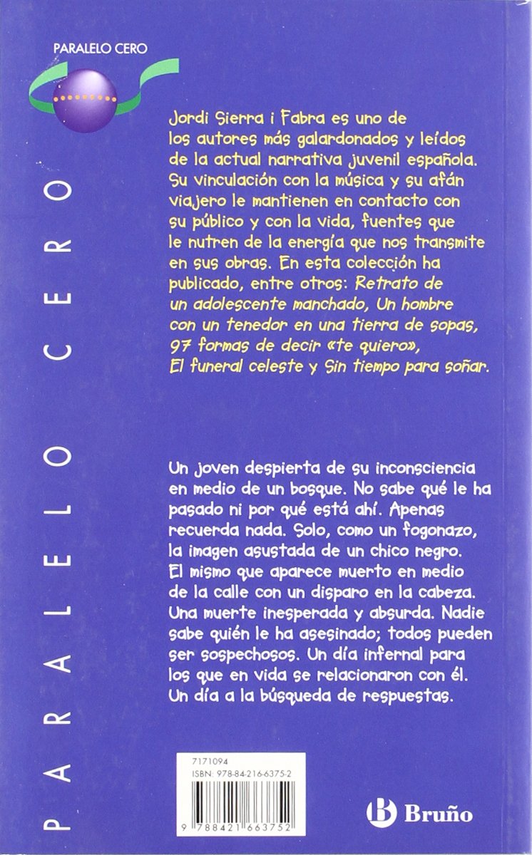 Un joven despierta de su inconsciencia en medio de un bosque. No sabe qué le ha pasado ni por qué está ahí. Apenas recuerda nada. Solo, como un fogonzazo, la imagen asustada de un chico negro. El mismo que aparece muerto en medio de la calle con un disparo en la cabeza. Una muerte inesperada y absurda. Nadie sabe quién le ha asesinado. Todos pueden ser sospechosos. Un día infernal para todos los que en vida se relacionaron con él. Un día a la búsqueda de respuestas.