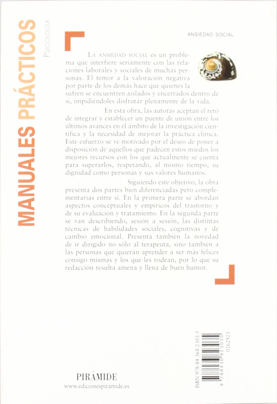 La ansiedad social es un problema que interfiere seriamente con las relaciones laborales y sociales de muchas personas. El temor a la valoración negativa por parte de los demás hace que quienes la sufren se encuentren aislados y encerrados dentro de sí, impidiéndoles disfrutar plenamente de la vida. En esta obra, las autoras aceptan el reto de integrar y establecer un puente de unión entre los últimos avances en el ámbito de la investigación científica y la necesidad de mejorar la práctica clínica. Este esfuerzo se ve motivado por el deseo de poner a disposición de aquellos que padecen estos miedos los mejores recursos con los que actualmente se cuenta para superarlos, respetando, al mismo tiempo, su dignidad como personas y sus valores humanos. Siguiendo este objetivo, la obra presenta dos partes bien diferenciadas pero complementarias entre sí. En la primera parte se abordan aspectos conceptuales y empíricos del trastorno y de su evaluación y tratamiento. En la segunda parte se van describiendo, sesión a sesión, las distintas técnicas de habilidades sociales, cognitivas y de cambio emocional. Presenta también la novedad de ir dirigido no sólo al terapeuta, sino también a las personas que quieran aprender a ser más felices consigo mismas y los que les rodean, por lo que su redacción resulta amena y llena de buen humor.