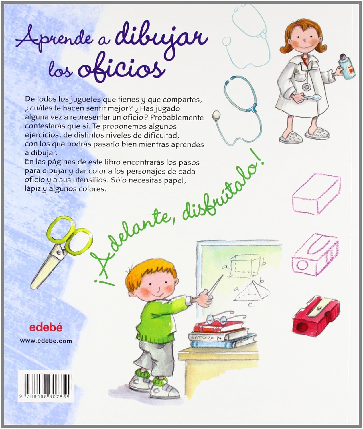 Aprende a dibujar los oficios De todos los juguetes que tienes y que compartes, ¿cuáles te hacen sentir mejor? ¿Has jugado alguna vez a representar un oficio? Probablemente contestarás que sí. Te proponemos algunos ejercicios, de distintos niveles de dificultad, con los que podrás pasarlo bien podrás pasarlo bien mientras aprendes a dibujar. En las páginas de este libro encontrarás los pasos a seguir para dibujar y dar color a los personajes de cada oficio y a sus utensilios. Sólo necesitas papel, lápiz y algunos colores.