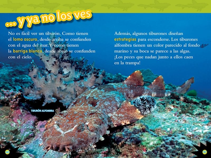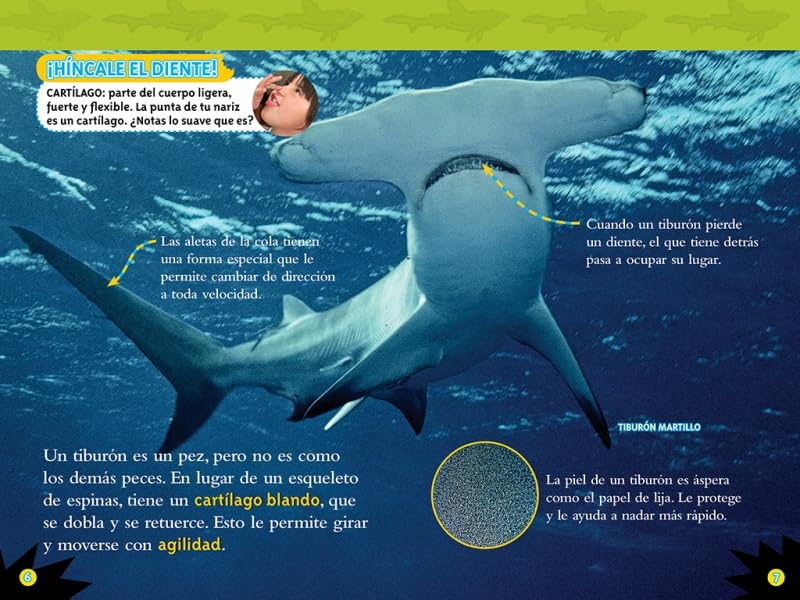 APRENDE Y DISFRUTA DE LA LECTURA CON NATIONAL GEOGRAPHICUna colección de libros adaptada para cada nivel de lectura.Es rápido, silencioso y tiene cinco hileras de dientes letales. ¡Ñam! Saluda al tiburón, el pez que ya reinaba en las profundidades de los océanos antes de que los dinosaurios caminasen por la tierra. Este pez tiene espinas de cartílago, y así puede nadar, torcerse y girar antes de que su presa pueda decir: “¡Glups!”. Es capaz de oler una sola gota de sangre en medio de 25 millones de gotas de agua de mar. También puede sentir la electricidad que desprende su presa y, a lo largo de su vida, pierde y renueva más de 10.000 dientes. Nuestras fotos chulísimas traerán el mundo de los tiburones a los lectores y nuestras curiosidades harán que se sumerjan en su ciencia.Descubre todos los secretos de los tiburones y aprende a leer con National Geographic:-Una serie de éxito comprobado, ideal para iniciarse en la lectura independiente.-Temas de gran interés.-Textos revisados por expertos en Educación infantil.-Imágenes increíbles.-Un enfoque divertido hacia el aprendizaje de la lectura.-Tres niveles de lectura para las necesidades de cada lector: prelectores, lectores independientes y lectores fluidos.