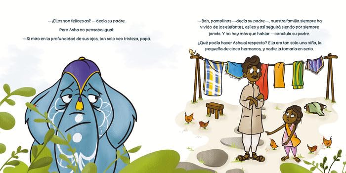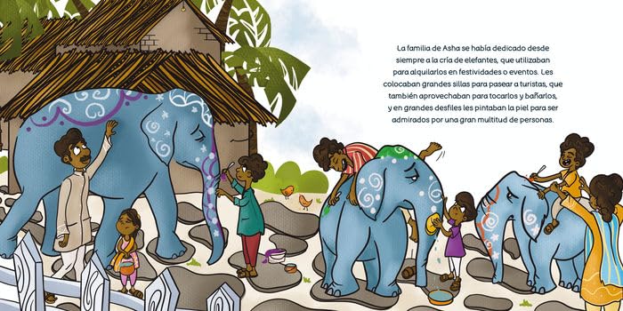 ¿Puede una niña cambiar el destino de los elefantes?La familia de Asha se había dedicado desde siempre a la cría de elefantes en cautividad. «Si miro en la profundidad de sus ojos, tan solo veo tristeza, papá», se quejaba la niña. Asha desea ayudar a los elefantes, pero tan solo tiene seis años, ¿cómo lo podría lograr? Disfruta y emociónate con esta historia llena de magia y de amor hacia los animales.