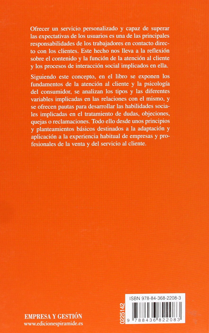 Ofrecer un servicio personalizado y capaz de superar las expectativas de los usuarios es una de las principales responsabilidades de los trabajadores en contacto directo con los clientes. Este hecho nos lleva a la reflexión sobre el contenido y la función de la atención al cliente y los procesos de interacción social implicados en ella. Siguiendo este concepto, en el libro se exponen los fundamentos de la atención al cliente y la psicología del consumidor, se analizan los tipos y las diferentes variables implicadas en las relaciones con el mismo, y se ofrecen pautas para desarrollar las habilidades sociales implicadas en el tratamiento de dudas, objeciones, quejas o reclamaciones. Todo ello desde unos principios y planteamientos básicos destinados a la adaptación y aplicación a la experiencia habitual de empresas y profesionales de la venta y del servicio al cliente.