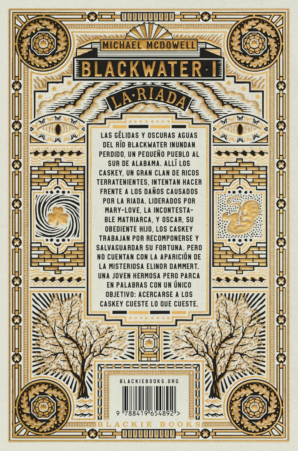 Descubre el primer volumen de la saga Blackwater. Una saga matriarcal. Mujeres poderosas que luchan por el dominio durante generaciones. Una atmósfera única para una lectura adictiva. Un retrato realista con toques sobrenaturales. Escritura magistral y visual en un ambicioso proyecto entre el pulp y HBO. «Michael Mcdowell: mi amigo, mi maestro. Fascinante, aterrador, simplemente genial. El mejor de todos nosotros.» STEPHEN KING «Una sabia combinación entre Dumas y Lovecraft. Un cruce entre Stephen King y Gabriel García Márquez. Despiadadamente adictivo.» ROBERT SHAPLEN, THE NEW YORK TIMES Las gélidas y oscuras aguas del río Blackwater inundan Perdido, un pequeño pueblo al sur de Alabama. Allí, los Caskey, un gran clan de ricos terratenientes, intentan hacer frente a los daños causados por la riada. Liderados por Mary-Love, la incontestable matriarca, y Óscar, su obediente hijo, los Caskey trabajan por recomponerse y salvaguardar su fortuna. Pero no cuentan con la aparición de la misteriosa Elinor Dammert. Una joven hermosa pero parca en palabras con un único objetivo: acercarse a los Caskey cueste lo que cueste.