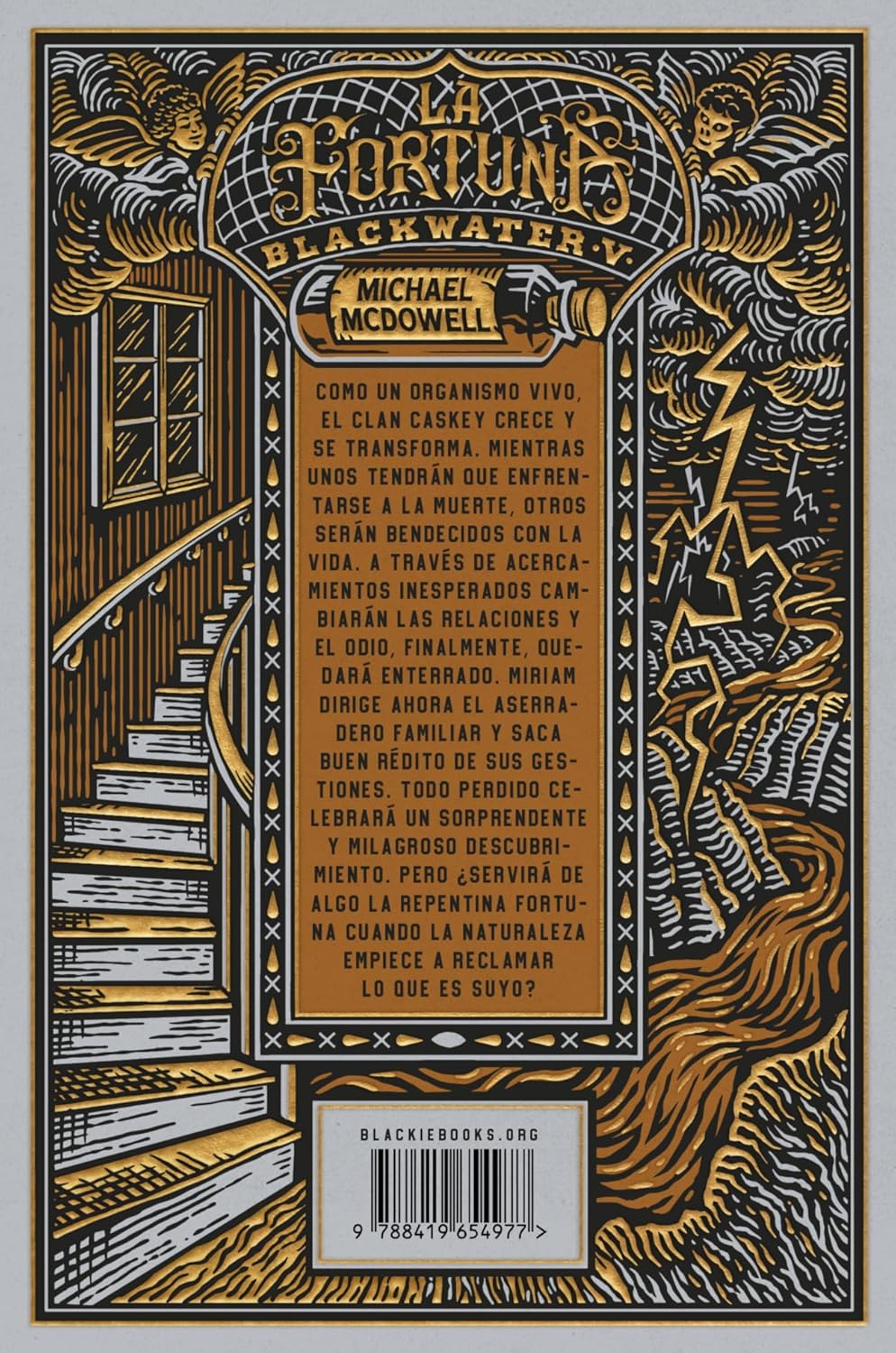 Descubre el quinto volumen de la saga Blackwater. Una saga matriarcal. Mujeres poderosas que luchan por el dominio durante generaciones. Una atmósfera única para una lectura adictiva. Un retrato realista con toques sobrenaturales. Escritura magistral y visual en un ambicioso proyecto entre el pulp y HBO. «Michael Mcdowell: mi amigo, mi maestro. Fascinante, aterrador, simplemente genial. El mejor de todos nosotros.» STEPHEN KING «Una sabia combinación entre Dumas y Lovecraft. Un cruce entre Stephen King y Gabriel García Márquez. Despiadadamente adictivo.» ROBERT SHAPLEN, THE NEW YORK TIMES Como un organismo vivo, el clan Caskey crece y se transforma. Unos tendrá que enfrentarse a la muerte, otros serán bendecidos con la vida. A través de acercamientos inesperados cambiarán las relaciones y el odio, finalmente, quedará enterrado. Miriam dirige ahora el aserradero y saca buen rédito de sus gestiones. Todo Perdido celebrará un sorprendente y milagroso descubrimiento. Pero, ¿servirá de algo la repentina fortuna cuando la naturaleza empiece a reclamar lo que es suyo?