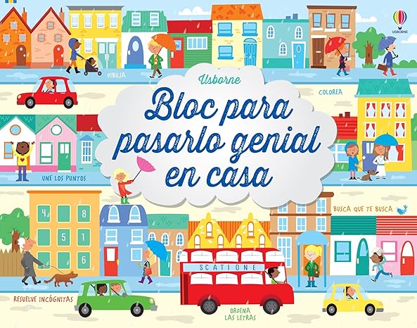 Un estupendo bloc de páginas arrancables y gran formato con más de 30 pasatiempos ilustrados variados en el anverso y con dibujos para colorear, en el reverso.