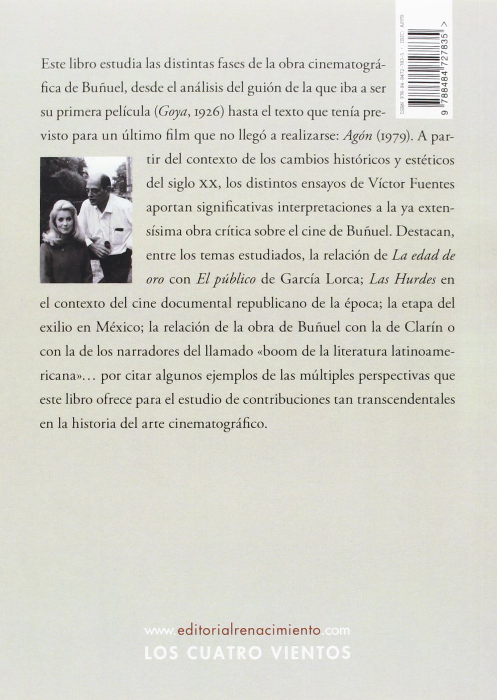 Este libro estudia las distintas fases de la obra cinematográfica de Buñuel, desde el análisis del guión de la que iba a ser su primera película (Goya, 1926) hasta el texto que tenía previsto para un último film que no llegó a realizarse: Agón (1979). A partir del contexto de los cambios históricos y estéticos del siglo XX, los distintos ensayos de Víctor Fuentes aportan significativas interpretaciones a la ya extensísima obra crítica sobre el cine de Buñuel. Destacan, entre los temas estudiados, la relación de La edad de oro con El público de García Lorca; Las Hurdes en el contexto del cine documental republicano de la época; la etapa del exilio en México; la relación de la obra de Buñuel con la de Clarín o con la de los narradores del llamado «boom de la literatura latinoamericana»… por citar algunos ejemplos de las múltiples perspectivas que este libro ofrece para el estudio de contribuciones tan transcendentales en la historia del arte cinematográfico. Víctor Fuentes. Salido de España en 1954, ha vivido en y conocido los países y culturas que informan la obra de Buñuel. De aquí que en sus estudios sobre el genial calandés y universal, destaque tanto la dimensión de su mundo plural y la constante multicultural y de raíz literaria, española e internacional, de su cine. Catedrático de literatura española (en la actualidad, profesor emérito de la Universidad de California, en Santa Bárbara), y miembro numerario de la Academia Norteamericana de la Lengua Española, ha publicado numerosos ensayos y varios libros en sus áreas de especialización, tales como La marcha al pueblo en las letras españolas (1917-1936), Benjamín Jarnés; Bio-grafía y metaficción, Galdós republicano: Escritos y discursos políticos (1906-1913), El cántico espiritual y material de César Vallejo, La mirada de Buñuel: cine, literatura y vida, además de ediciones críticas de La Regenta y de Misericordia. Es también autor de una trilogía, entre autobiografía y metaficción: Morir en Isla Vista, Bio-Grafía americana y Memorias del segundo exilio español (1954-2010).