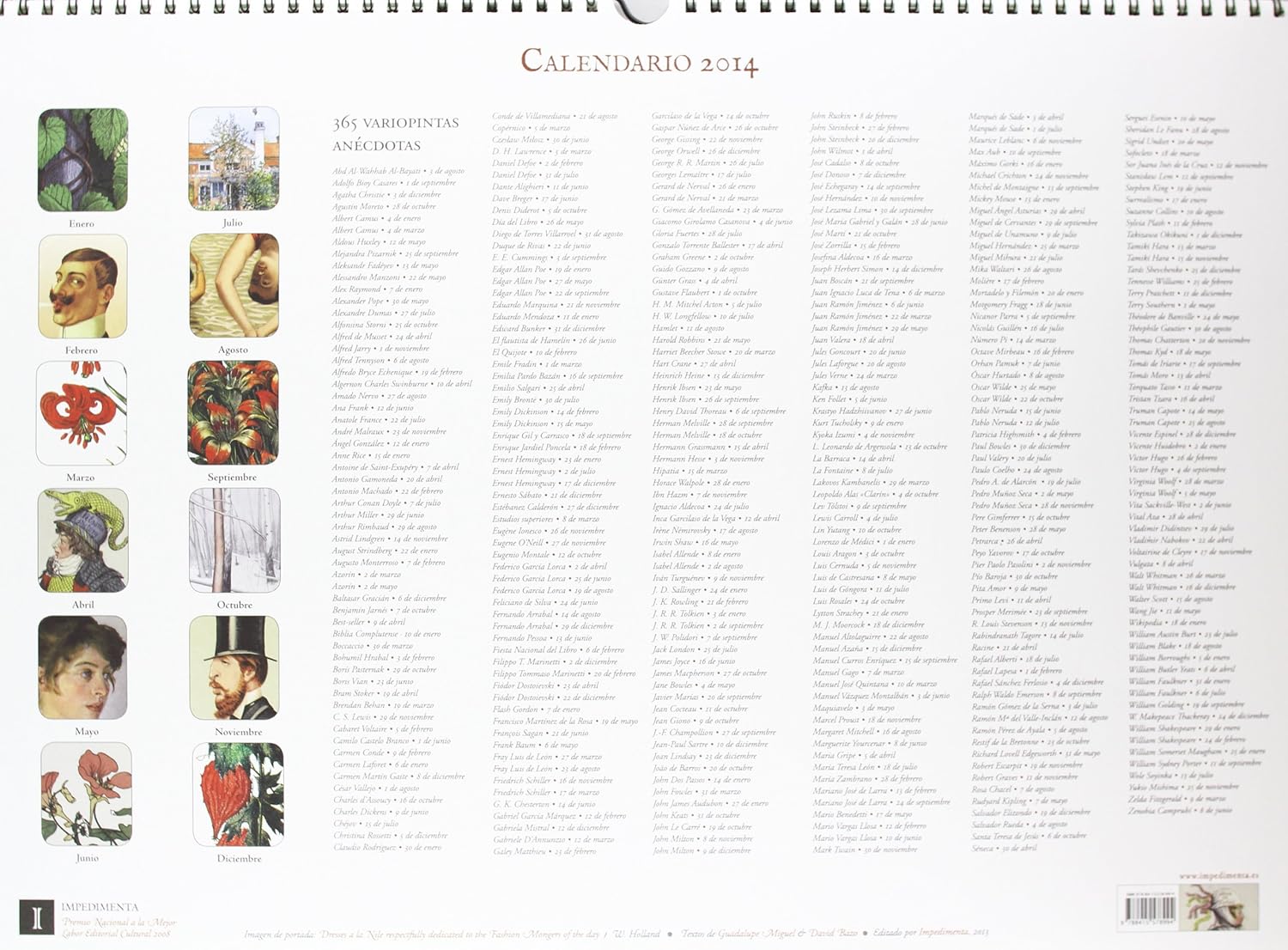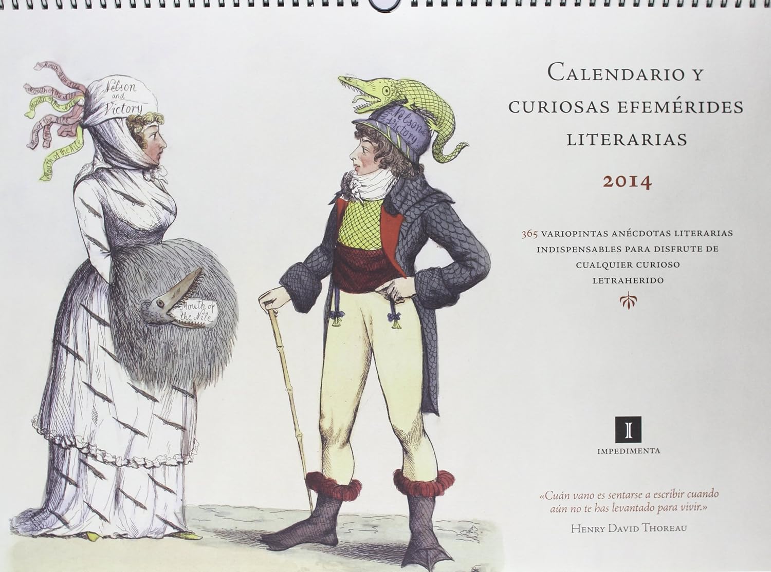 Impedimenta presenta su «Calendario y Anécdotas literarias de 2014». Con algunas de las imágenes de portada de las novedades más conocidas y hermosas de Impedimenta, y un recorrido por 365 variopintas anécdotas indispensables para disfrute de cualquier curioso letraherido. Un objeto bello, muy literario, para todos aquellos que desean que 2014 sea un año lleno de libros.