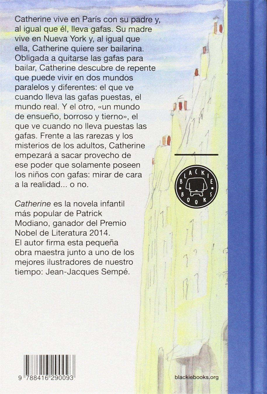 Catherine vive en París con su padre y, al igual que él, lleva gafas. Su madre vive en Nueva York y, al igual que ella, Catherine quiere ser bailarina. Obligada a quitarse las gafas para bailar, Catherine descubre de repente que puede vivir en dos mundos paralelos y diferentes: el que ve cuando lleva las gafas puestas, el mundo real. Y el otro, «un mundo de ensueño, borroso y tierno», el que ve cuando no lleva puestas las gafas. Frente a las rarezas y los misterios de los adultos, Catherine empezará a sacar provecho de ese poder que solamente poseen los niños con gafas: mirar de cara a la realidad… o no. “Catherine” es la novela infantil más popular de Patrick Modiano, ganador del Premio Nobel de Literatura 2014. El autor firma esta pequeña obra maestra junto a uno de los mejores ilustradores de nuestro tiempo: Jean-Jacques Sempé.