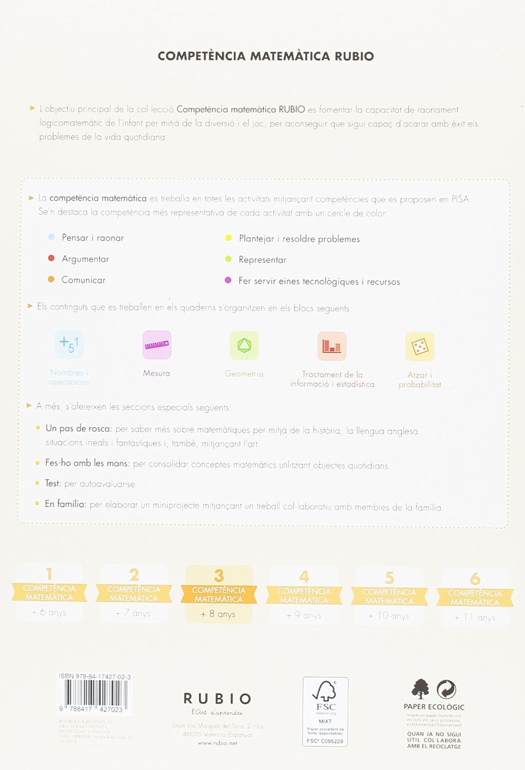 En el cuaderno Competència matemàtica 3 en catalán para niños a partir de 8 años se fomenta la capacidad de razonamiento lógico-matemático de los peques, mediante la diversión y el juego. Trabajarán: Números y operaciones – Multiplicaciones por la unidad seguida de ceros – La división – Las fracciones. Comparación de fracciones – Números decimales con monedas y billetes Geometría – Tipos de líneas – Ángulos y tipos de ángulos – Clasificación de polígonos – Círculo y circunferencia con compás – Perímetro y área de polígonos – Simetría y traslaciones Medida – Palmo, pie y paso – Kilómetro, metro, decímetro y centímetro – Litro, medio litro y cuarto de litro – Kilogramo y gramo – El calendario – Reloj analógico y digital. Tratamiento de la información y estadística – Tablas de doble entrada y pictogramas – Gráficos de líneas La competencia matemática se trabaja en todas las actividades a través de competencias propuestas en PISA. 44 páginas en formato A4.