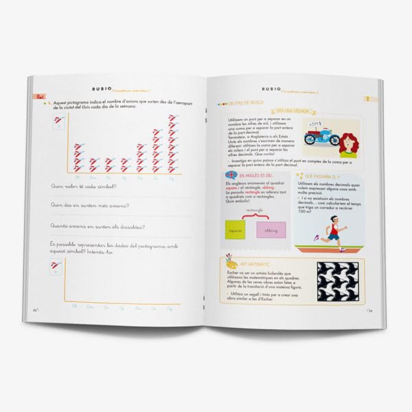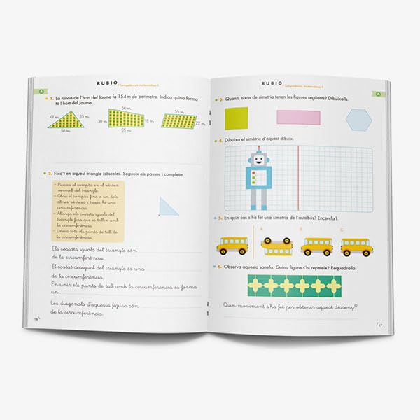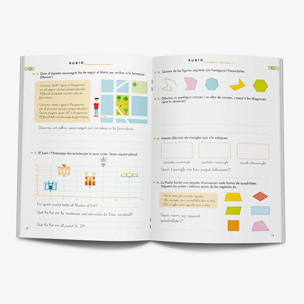 En el cuaderno Competència matemàtica 4 en catalán para niños a partir de 9 años se fomenta la capacidad de razonamiento lógico-matemático de los peques, mediante la diversión y el juego. Números y operaciones – Números naturales hasta 7 cifras. El millón – Comparación – Múltiplos y divisores – Criterios de divisibilidad – Números primos y compuestos – Suma y resta con decimales – Multiplicar y dividir números decimales por la unidad seguida de ceros – Operaciones con números decimales – Suma y resta de fracciones – Potencias de base 10 – Descomposición polinómica Geometría – La situación en el espacio – Coordenadas y movimientos en el plano – Polígonos cóncavos y convexos – Perímetro de figuras planas – Construcción de figuras – Movimientos en el plano: traslaciones y simetrías – Los cuerpos geométricos y sus elementos Medida – Medida de ángulos con instrumentos de medida convencionales – Clasificación de ángulos según su abertura y posición – Longitud – Operaciones con medidas de longitud – Expresión compleja e incompleta – Operaciones con medidas de capacidad – Operaciones con medidas de masa Tratamiento de la información y estadística – Gráficos de barras – Gráficos de líneas – Pictogramas Incluye recortable de polígonos. La competencia matemática se trabaja en todas las actividades a través de competencias propuestas en PISA. 44 páginas en formato A4.