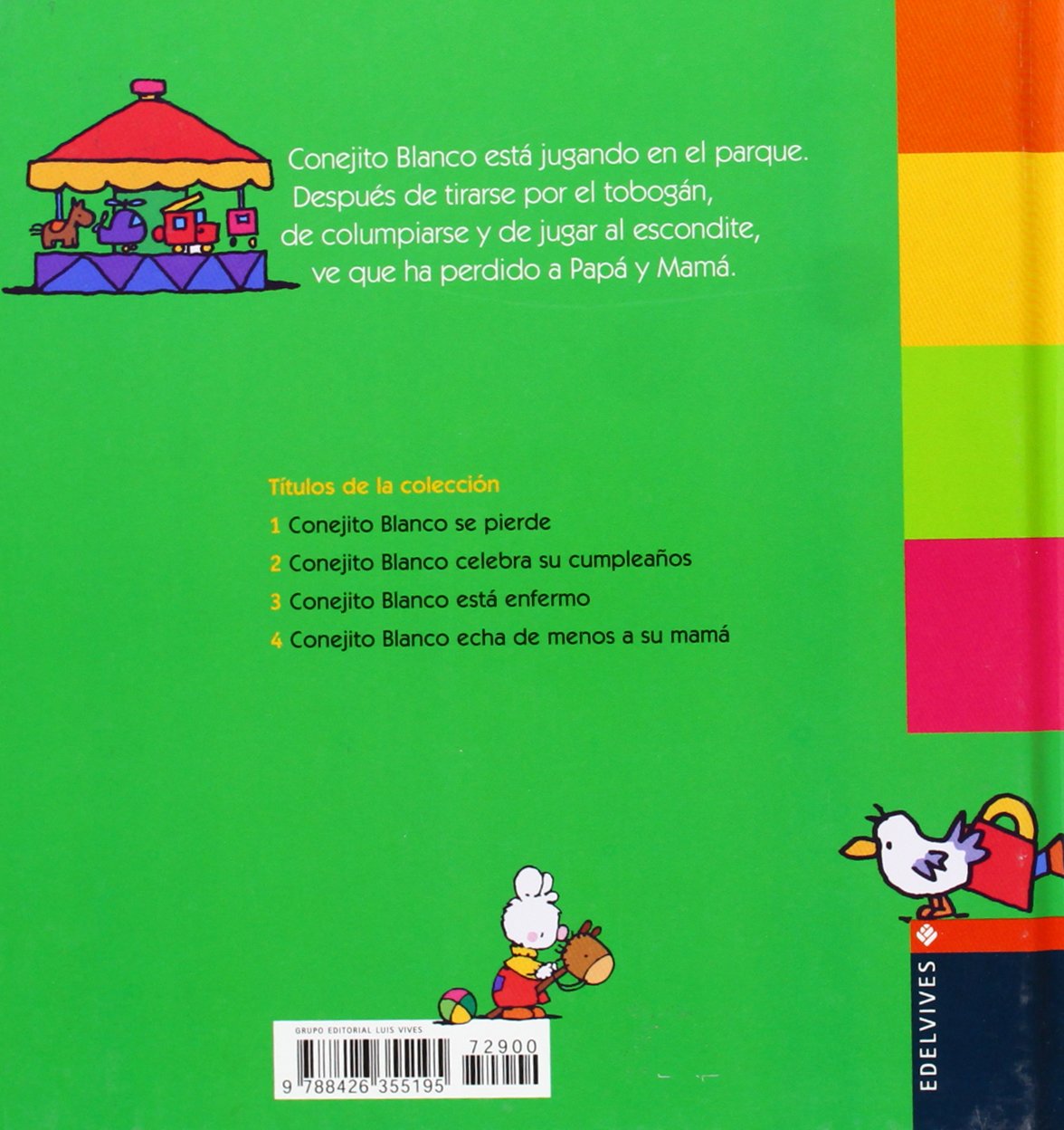 Little White Rabbit is playing in the park, but after sliding down the toboggan, flying on the swings, and playing hide and seek, he realizes he has gotten stranded from Mom and Dad.