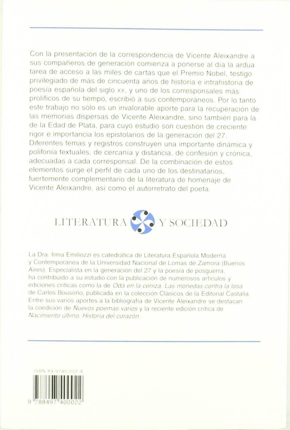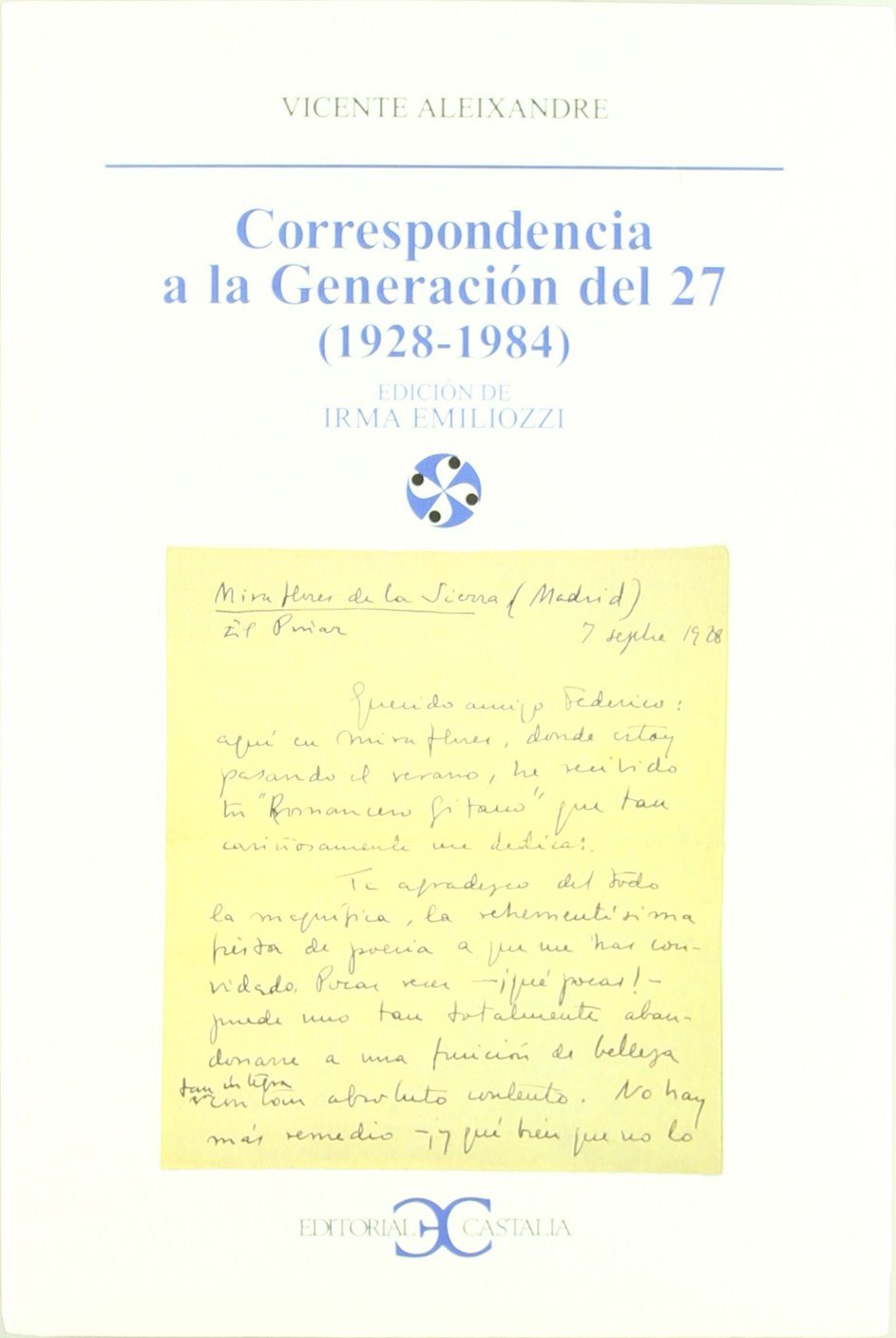 Nada mejor que las palabras que Pere Gimferrer pronunció, en 1985, con motivo de su ingreso en la Real Academia Española al ocupar el sillón que Vicente Aleixandre había dejado vacío: ( ) El día en que pueda ver la luz ese vastísimo epistolario, ( ), saltará a la vista la dimensión literaria del Vicente Aleixandre epistológrafo, probablemente comparable sólo, en la historia de las letras hispánicas, con la de dos de sus admiraciones máximas en este campo: Leandro Fernández de Moratín y Juan Valera. La colección de cartas que se reúnen en estas páginas están dirigidas a Gerardo Diego, Jorge Guillén, Federico García Lorca, Dámaso Alonso, Emilio Prados, Manuel Altolaguirre y familia, Pedro Salinas y Carles Riba y su mujer Clementina Arderíu. Es evidente que no están todos los integrantes del grupo del 27 y que, además, puede sorprender la inclusión de los poetas catalanes Riba y Arderíu. Lo que sí es seguro es que todos pertenecían al círculo de amigos más queridos de nuestro autor.La correspondencia recogida ofrece un corpus verdaderamente importante: más de 90 cartas, 20 tarjetas postales y algunas notas de adhesión, recuerdo, etc. A través de todo el material recogido, del que también se ofrece documentación gráfica, se contempla las peripecias personales y ajenas, de índole afectiva y profesional de Aleixandre. Dos apéndices ponen punto final a la Correspondencia.