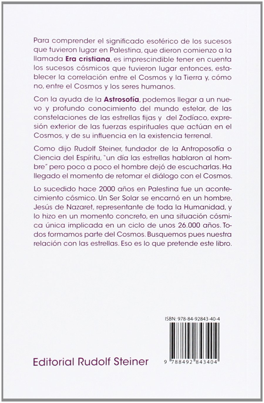 Para comprender el significado esotérico de los sucesos que tuvieron lugar en Palestina, que dieron comienzo a la llamada Era cristiana, es imprescindible tener en cuenta los sucesos cósmicos que tuvieron lugar entonces, establecer la correlación entre le Cosmos y la Tierra y, cómo no, ente el Cosmos y los seres humanos. Como dijo Rudolf Steiner, fundador de la Antroposofía o Ciencia del Espíritu, ” un día las estrellas hablaron al hombre” pero poco a poco el hombre dejó de escucharlas. Ha llegado el momento de retomar el diálogo con el Cosmos.