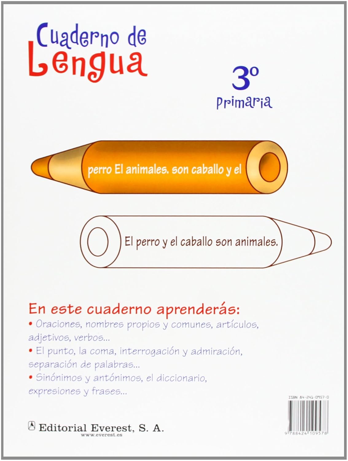 Cada cuaderno tiene 64 páginas y están pensados para trabajarlos durante todo el curso pues las actividades que contienen son reflejo de los contenidos que se abordan en primer curso. Cada una de las páginas contiene tres o cuatro actividades, numerando las actividades por página. Las actividades están planteadas de forma progresiva, en orden de dificultad creciente, de manera que las actividades que figuran al principio del cuadernillo son para trabajarlas en los comienzos del curso, a medida que éste avanza se trabajarían actividades de páginas intermedias y al final de curso trabajaría actividades del final del cuadernillo. En este cuaderno aprenderás: – Oraciones, nombres propios y comunes, artículos, adjetivos, verbos… – El punto, la coma, interrogación y admiración, separación de palabras… – Sinónimos y antónimos, el diccionario, expresiones y frases…
