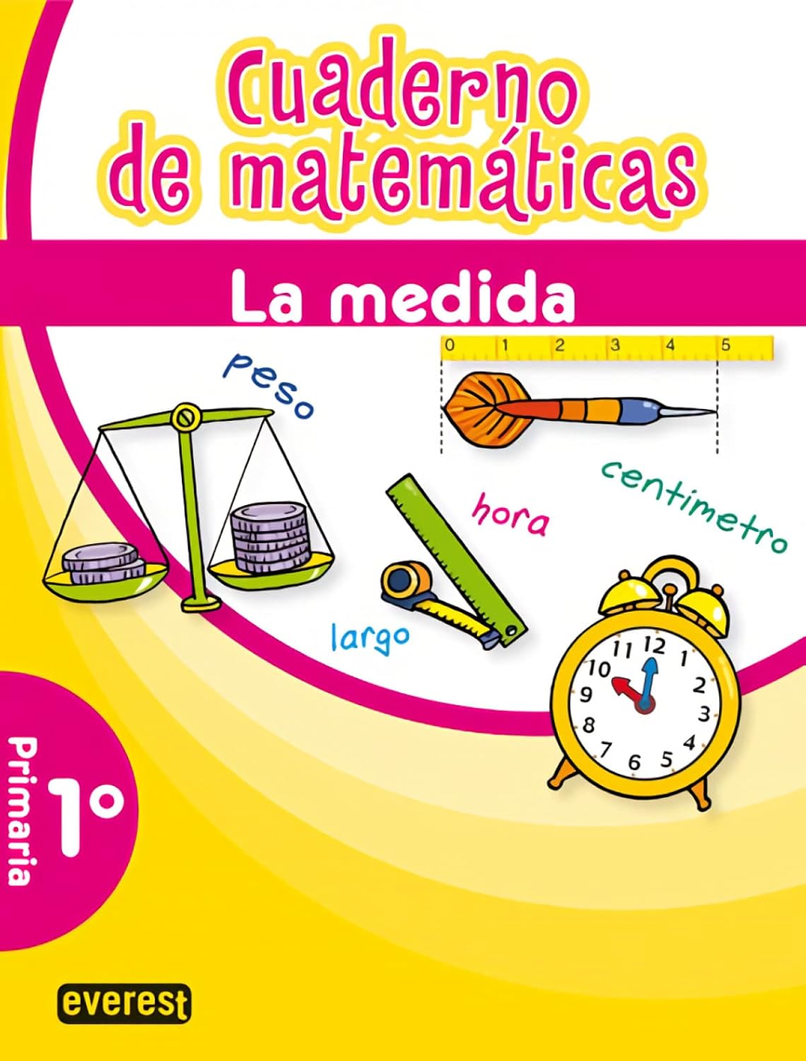 Cuaderno de matemáticas fungible destinado a alumnos de 1º de primaria. Contiene actividades y también algunas pinceladas de teoría. Sus contenidos están relacionados con el bloque de Medida y se trabajan medidas de longitud, de peso, de capacidad y de tiempo.
