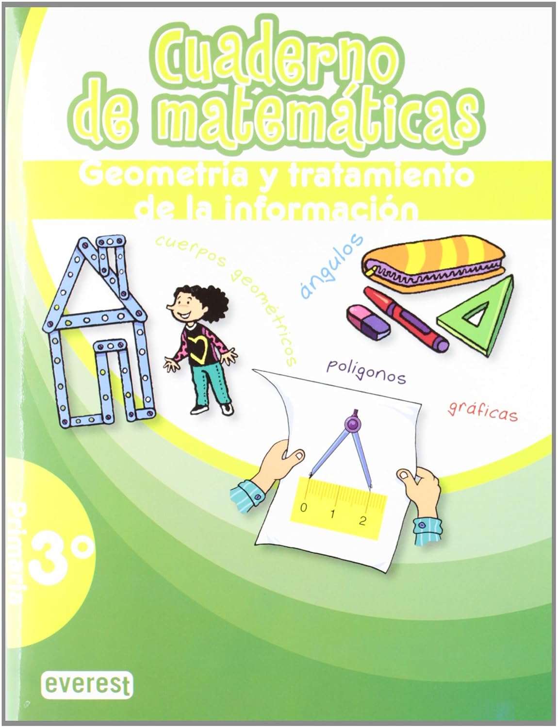 Cuaderno de matemáticas fungible destinado a alumnos de 3º de primaria. Contiene actividades y también algunas pinceladas de teoría. Sus contenidos están relacionados con los bloques Geometría y del Tratamiento de la información. Se trabajan las líneas y ángulos, los polígonos, los cuadriláteros, los triángulos, el círculo y la circunferencia, los cuerpos geométricos, las tablas de registro de datos y diferentes tipos de gráficas.