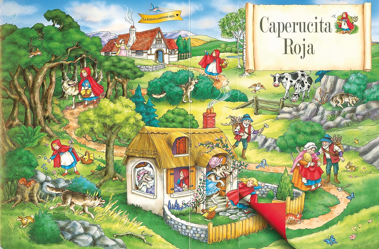 Despliega la solapa de cada página y lee el cuento que pordrás seguir visualmente a través de la detallada ilustración. ¡Cinco cuentos clásicos y una nueva y original manera de leerlos!
