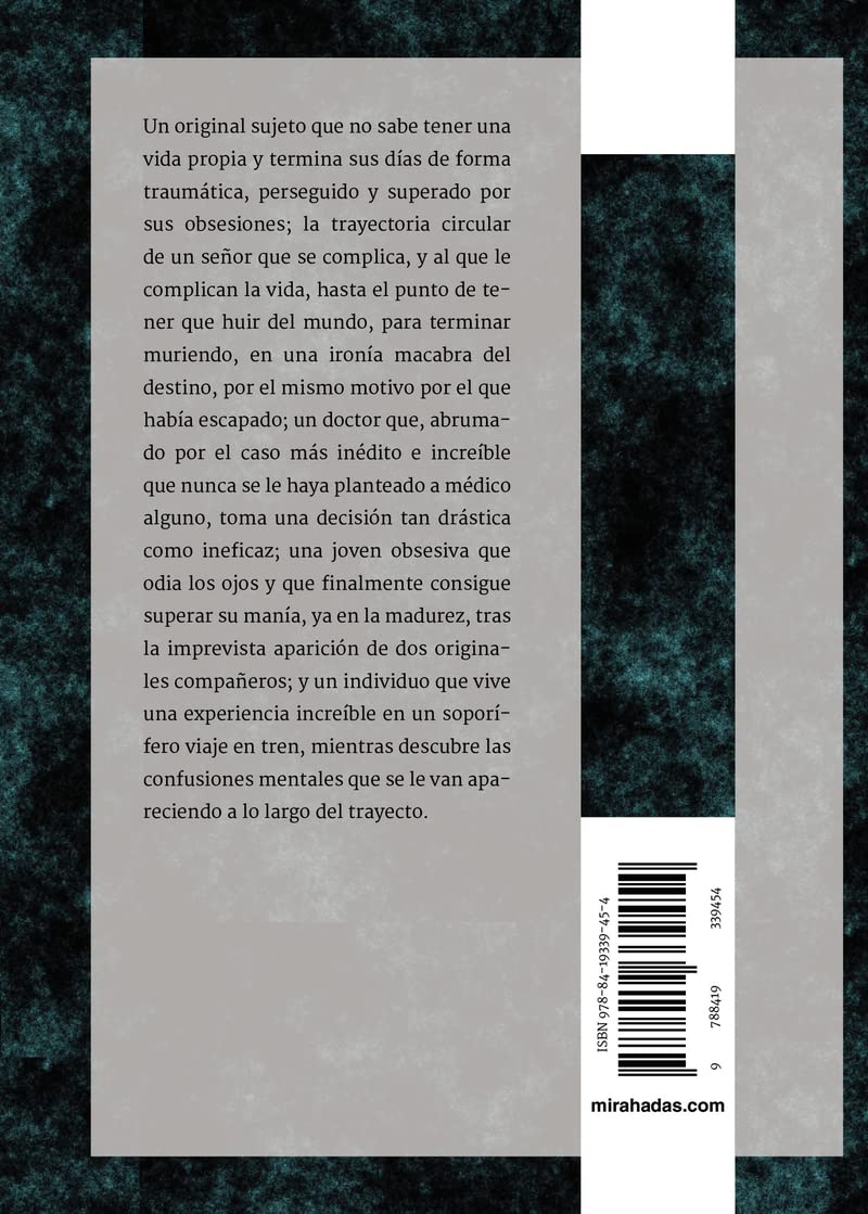 Perder el sentido de la realidad es imposible porque todo, hasta lo más improbable, puede suceder.Un original sujeto que no sabe tener una vida propia y termina sus días de forma traumática, perseguido y superado por sus obsesiones; la trayectoria circular de un señor que se complica, y al que le complican la vida, hasta el punto de tener que huir del mundo, para terminar muriendo, en una ironía macabra del destino, por el mismo motivo por el que había escapado; un doctor que, abrumado por el caso más inédito e increíble que nunca se le haya planteado a médico alguno, toma una decisión tan drástica como ineficaz; una joven obsesiva que odia los ojos y que finalmente consigue superar su manía, ya en la madurez, tras la imprevista aparición de dos originales compañeros; y un individuo que vive una experiencia increíble en un soporífero viaje en tren, mientras descubre las confusiones mentales que se le van apareciendo a lo largo del trayecto.