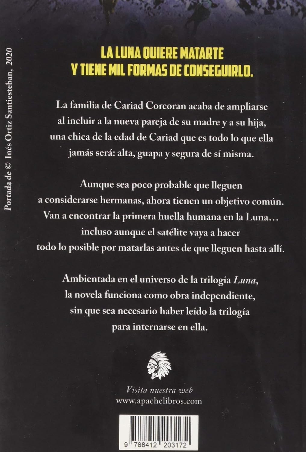 La Luna quiere matarte y tiene mil formas de conseguirlo. La familia de Cariad Corcoran acaba de ampliarse al incluir a la nueva pareja de su madre y a su hija, una chica de la edad de Cariad que es todo lo que ella jamás será: alta, guapa y segura de sí misma. Aunque sea poco probable que lleguen a considerarse hermanas, ahora tienen un objetivo común. Van a encontrar la primera huella humana en la Luna… incluso aunque el satélite vaya a hacer todo lo posible por matarlas antes de que lleguen hasta allí. Ambientada en el universo de la trilogía Luna, la novela funciona como obra independiente, sin que sea necesario haber leído la trilogía para internarse en ella.