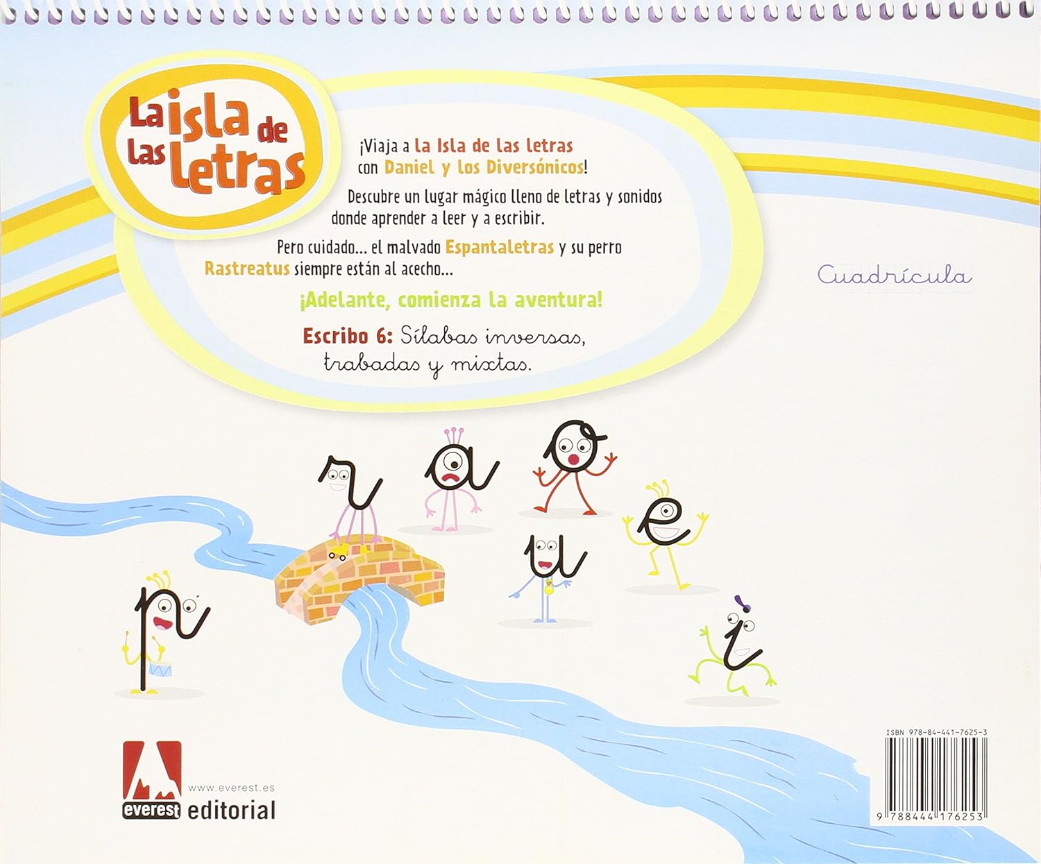 ¡Viaja a La Isla de Las Letras con Daniel y los Diversónicos! Descubre un lugar mágico y lleno de letras y sonidos donde aprender a leer y a escribir. Pero cuidado…. el malvado Espantaletras y su perro Rastreatus siempre están al acecho… ¡Adelante, comienza la aventura! Escribo 6: Sílabas inversas, trabadas y mixtas.