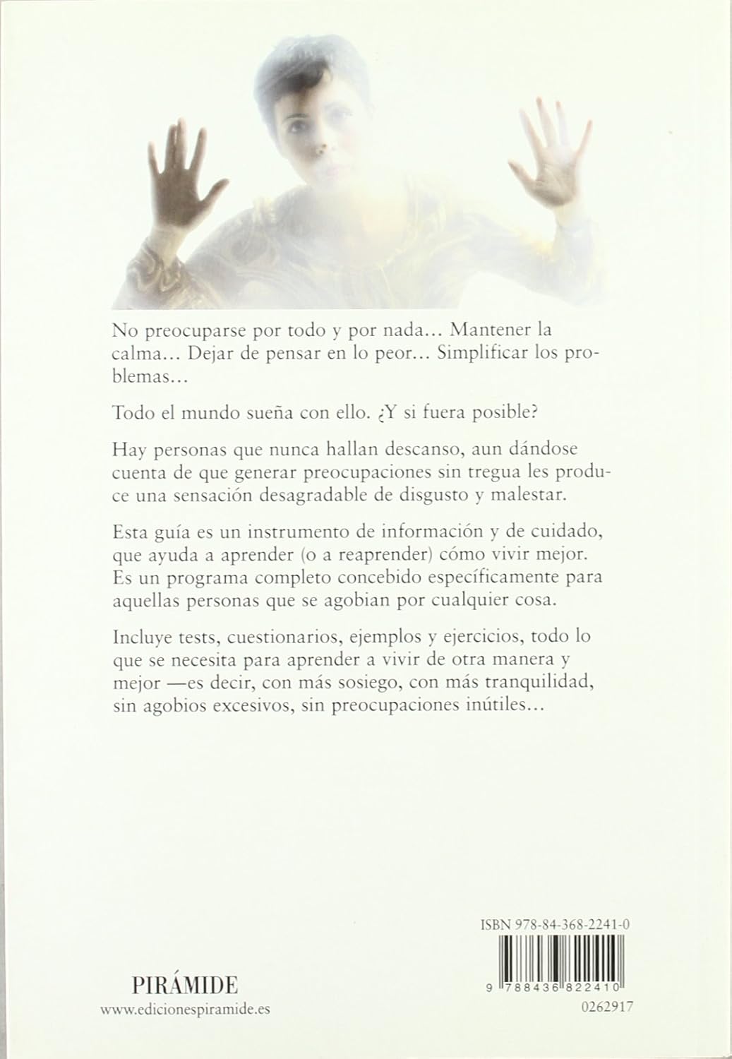 No preocuparse por todo y por nada… Mantener la calma… Dejar de pensar en lo peor… Simplificar los problemas… Todo el mundo sueña con ello. ¿Y si fuera posible? Hay personas que nunca hallan descanso, aun dándose cuenta de que generar preocupaciones sin tregua les produce una sensación desagradable de disgusto y malestar. Esta guía es un instrumento de información y de cuidado, que ayuda a aprender (o a reaprender) cómo vivir mejor. Es un programa completo concebido específicamente para aquellas personas que se agobian por cualquier cosa. Incluye tests, cuestionarios, ejemplos y ejercicios, todo lo que se necesita para aprender a vivir de otra manera y mejor -es decir, con más sosiego, con más tranquilidad, sin agobios excesivos, sin preocupaciones inútiles…