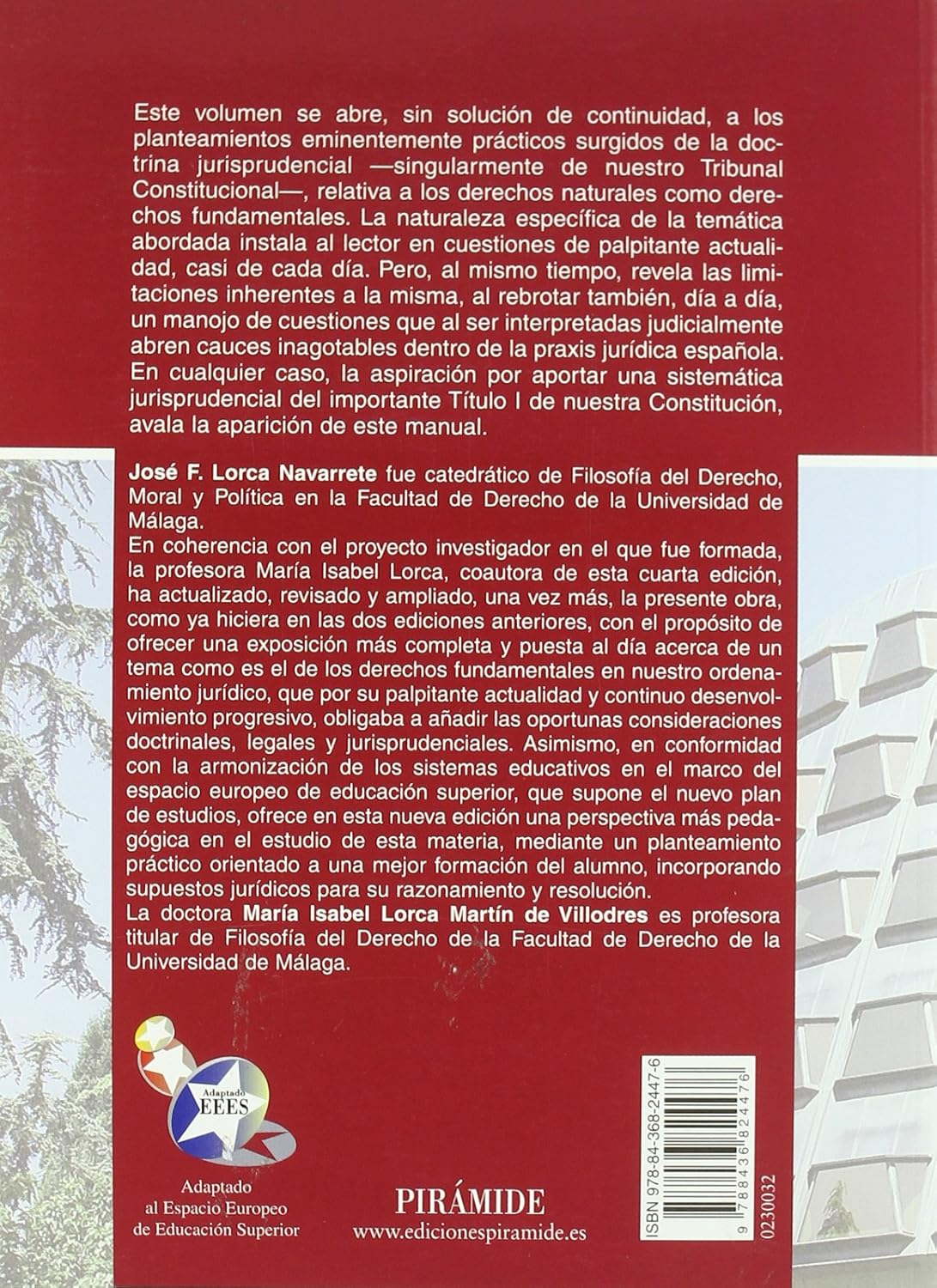 Este volumen se abre, sin solución de continuidad, a los planteamientos eminentemente prácticos surgidos de la doctrina jurisprudencial -singularmente de nuestro Tribunal Constitucional-, relativa a los derechos naturales como derechos fundamentales. La naturaleza específica de la temática abordada instala al lector en cuestiones de palpitante actualidad, casi de cada día. Pero, al mismo tiempo, revela las limitaciones inherentes a la misma, al rebrotar también, día a día, un manojo de cuestiones que al ser interpretadas judicialmente abren cauces inagotables dentro de la praxis jurídica española. En cualquier caso, la aspiración por aportar una sistemática jurisprudencial del importante Título I de nuestra Constitución, avala la aparición de este manual.
