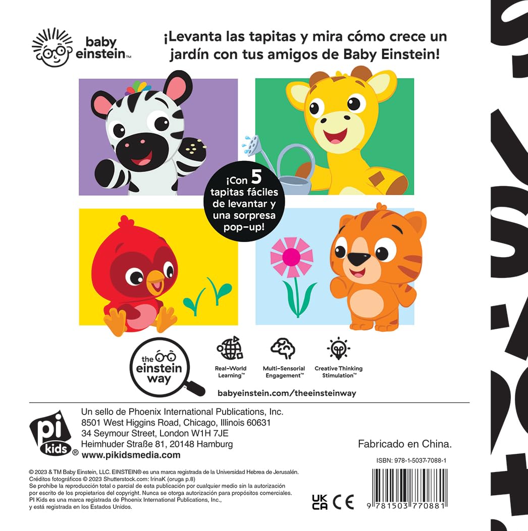 ¡Levanta las tapitas y mira cómo crece un jardín con tus amigos de Baby Einstein! Con 5 tapitas fáciles de levantar y una sorpresa pop-up. Fomenta la exploración STEAM.
