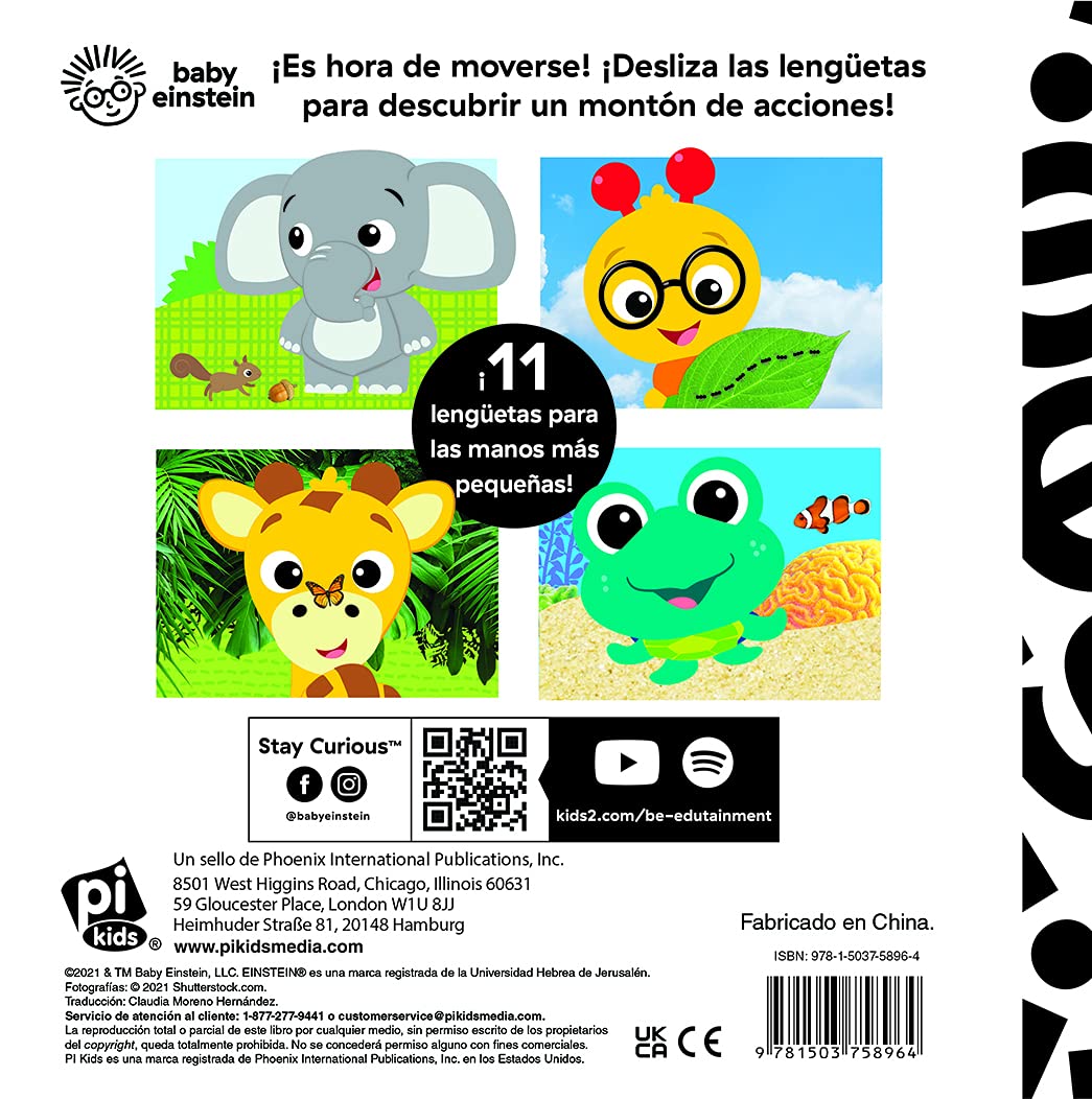 Desliza y mueve con baby einstein fomenta el aprendizaje steam.¡Es hora de moverse! ¡Desliza las lengüetas para descubrir un montón de acciones!11 Lengüetas para las manos más pequeñas!