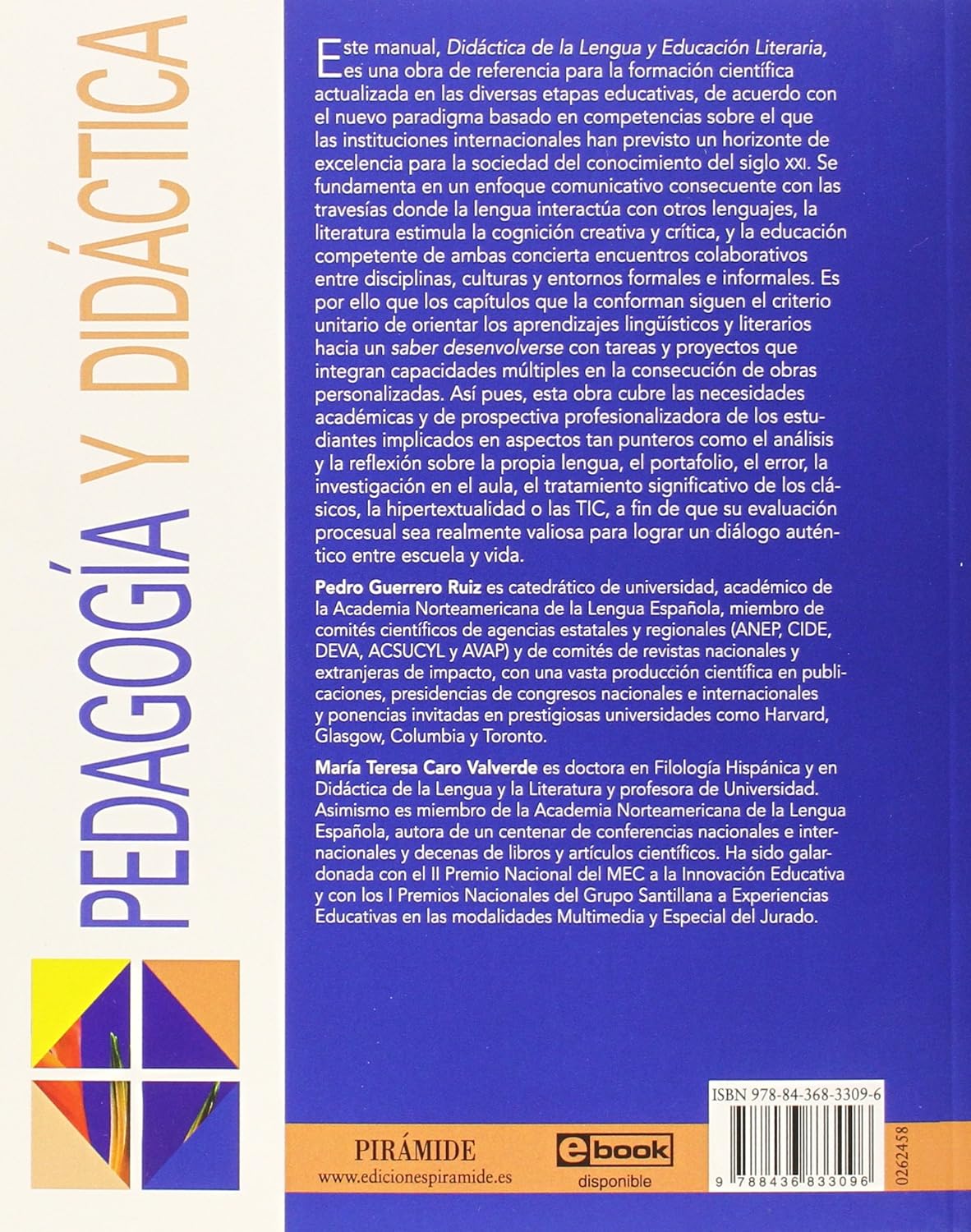 Este manual, Didáctica de la Lengua y Educación Literaria, es una obra de referencia para la formación científica actualizada en las diversas etapas educativas, de acuerdo con el nuevo paradigma basado en competencias sobre el que las instituciones internacionales han previsto un horizonte de excelencia para la sociedad del conocimiento del siglo XXI. Se fundamenta en un enfoque comunicativo consecuente con las travesías donde la lengua interactúa con otros lenguajes, la literatura estimula la cognición creativa y crítica, y la educación competente de ambas concierta encuentros colaborativos entre disciplinas, culturas y entornos formales e informales. Es por ello que los capítulos que la conforman siguen el criterio unitario de orientar los aprendizajes lingüísticos y literarios hacia un saber desenvolverse con tareas y proyectos que integran capacidades múltiples en la consecución de obras personalizadas. Así pues, esta obra cubre las necesidades académicas y de prospectiva profesionalizadora de los estudiantes implicados en aspectos tan punteros como el análisis y la reflexión sobre la propia lengua, el portafolio, el error, la investigación en el aula, el tratamiento significativo de los clásicos, la hipertextualidad o las TIC, a fin de que su evaluación procesual sea realmente valiosa para lograr un diálogo auténtico entre escuela y vida.
