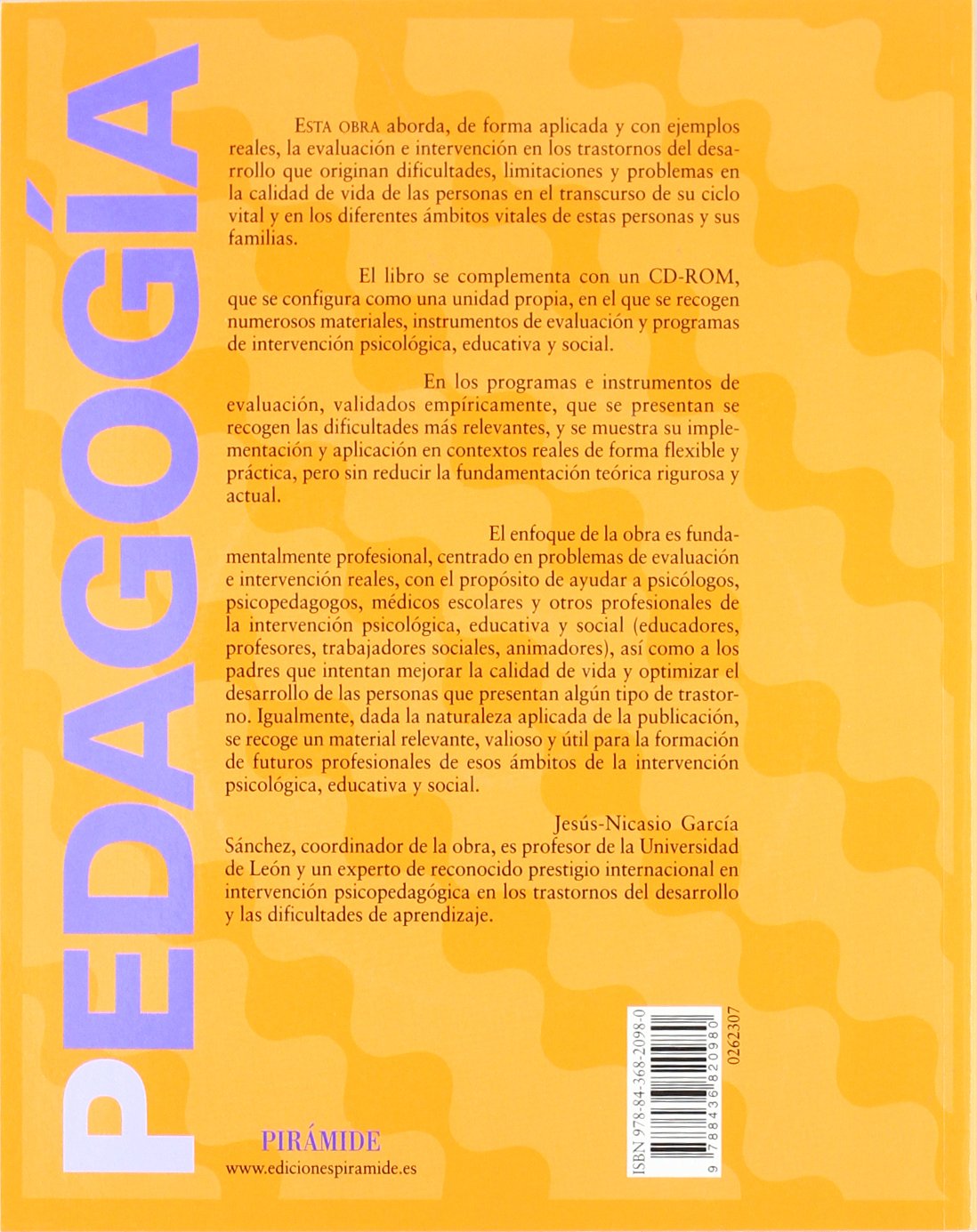 Esta obra aborda, de forma aplicada y con ejemplos reales, la evaluación e intervención en los trastornos del desarrollo que originan dificultades, limitaciones y problemas en la calidad de vida de las personas en el transcurso de su ciclo vital y en los diferentes ámbitos vitales de estas personas y sus familias. El libro se complementa con un CD-ROM, que se configura como una unidad propia, en el que se recogen numerosos materiales, instrumentos de evaluación y programas de intervención psicológica, educativa y social. En los programas e instrumentos de evaluación, validados empíricamente, que se presentan se recogen las dificultades más relevantes, y se muestra su implementación y aplicación en contextos reales de forma flexible y práctica, pero sin reducir la fundamentación teórica rigurosa y actual. El enfoque de la obra es fundamentalmente profesional, centrado en problemas de evaluación e intervención reales, con el propósito de ayudar a psicólogos, psicopedagogos, médicos escolares y otros profesionales de la intervención psicológica, educativa y social (educadores, profesores, trabajadores sociales, animadores), así como a los padres que intentan mejorar la calidad de vida y optimizar el desarrollo de las personas que presentan algún tipo de trastorno. Igualmente, dada la naturaleza aplicada de la publicación, se recoge un material relevante, valioso y útil para la formación de futuros profesionales de esos ámbitos de la intervención psicológica, educativa y social.