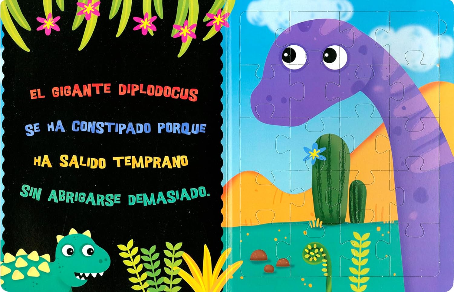 Lee las divertidas rimas y diviértete con los diplodocus de este libro-puzle. ¿Eres capaz de armar todos los puzles tú solo?