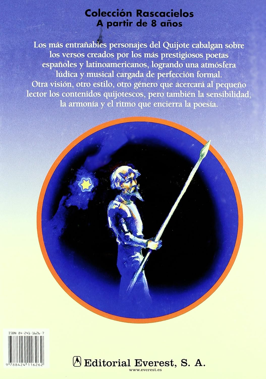 De la mano de poetas españoles y latinoamericanos de primera fila esta cuidadísima edición recrea diferentes aspectos de El Quijote, creando alrededor de objetos, animales y personajes una atmósfera que bajo una apariencia totalmente lúdica y musical, encierra una pensada y lograda perfección en lo que a construcción poética se refiere. Otra visión, otro estilo, otro género que acercará al pequeño lector los contenidos quijotescos, pero, también, la sensibilidad, la armonía y el ritmo que encierra el ejercicio poético. La genialidad de la ilustración contribuye a la creación de esta atmósfera de juego, canción y literatura.