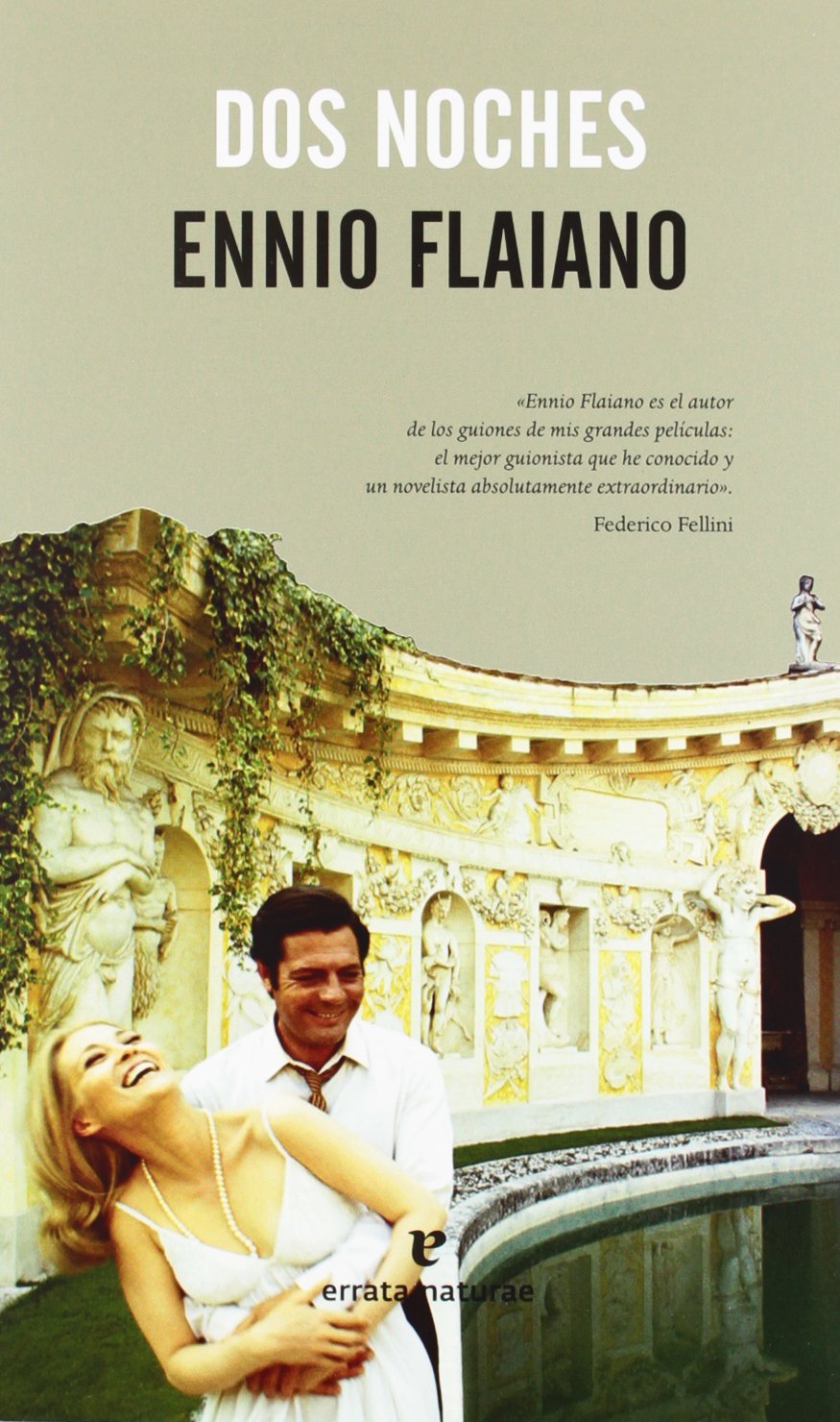 Tal vez el nombre de Ennio Flaiano no les diga, de momento, demasiado. Pero seguro que conocen películas como La dolce vita, 8 ¿, Las noches de Cabiria, Giulietta de los espíritus, Los inútiles Todas ellas son obra de Federico Fellini y de Ennio Flaiano. Pues Flaiano fue el gran guionista de Fellini y el creador de todas esas historias. Como el propio Fellini reconocía, «Flaiano es el mejor guionista que he conocido y un novelista absolutamente extraordinario». Dos noches recoge dos novelas, dos historias de dos escritores romanos que aparecen como el derecho y el revés de un único yo disperso, escéptico y melancólico. El primero de ellos, Graziano, es un periodista indolente de día y un escritor inédito de noche, con auténtico terror a la página en blanco, seductor desastrosamente torpe a quien sólo llega a serenar la tácita admiración de Dory Nelson, chica de compañía. Una noche, mientras trata de cubrir la noticia de un avistamiento extraterrestre a las afueras de Roma, es abducido por una alienígena dócil e impasible que lo conduce hasta su nave nodriza. Comienza así una historia de amor entre dos seres, qué duda cabe, muy distintos. El descontento y un inquieto aburrimiento, sin embargo, marcan la existencia de Adriano, protagonista de la segunda novela. Se trata de un escritor a quien todo le parece «sin peso, evitable, aburrido», y que conduce desde Roma al santuario donde un amigo cineasta, un tal Fellini, está rodando los exteriores de su próxima película, Las noches de Cabiria. Más tarde, se trasladará a su casa de la costa. Adriano encuentra allí la soledad de un litoral en el que se percibe «la calma, la profunda voluptuosidad del tiempo», pero en el que la inmovilidad de los siglos está ahora contaminada por la negligencia y la fealdad.