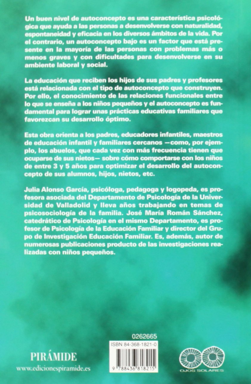 Un buen nivel de autoconcepto es una característica psicológica que ayuda a las personas a desenvolverse con naturalidad, espontaneidad y eficacia en los diversos ámbitos de la vida. Por el contrario, un autoconcepto bajo es un factor que está presente en la mayoría de las personas con problemas más o menos graves y con dificultades para desenvolverse en su ambiente laboral y social. La educación que reciben los hijos de sus padres y profesores está relacionada con el tipo de autoconcepto que construyen. Por ello, el conocimiento de las relaciones funcionales entre lo que se enseña a los niños pequeños y el autoconcepto es fundamental para lograr unas prácticas educativas familiares que favorezcan su desarrollo óptimo. Esta obra orienta a los padres, educadores infantiles, maestros de educación infantil y familiares cercanos -como, por ejemplo, los abuelos, que cada vez con más frecuencia tienen que ocuparse de sus nietos- sobre cómo comportarse con los niños de entre 3 y 5 años para optimizar el desarrollo del autoconcepto de sus alumnos, hijos, nietos, etc.