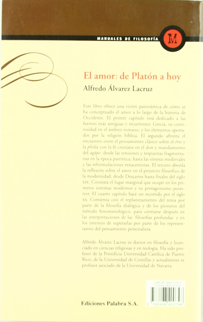 Visión completa y panorámica de cómo se ha entendido el amor en Occidente, desde los diálogos de Platón hasta el convulso siglo XX. Un libro claro y profundo.