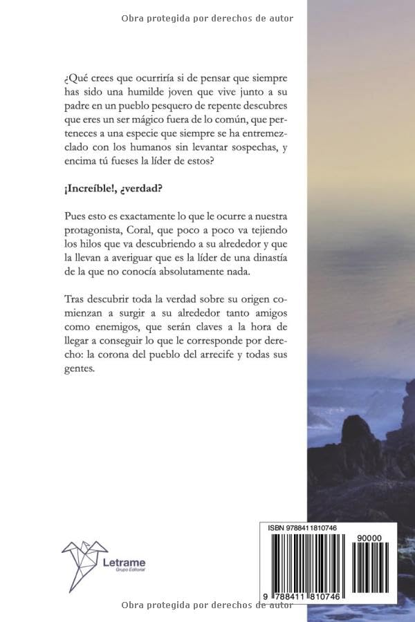 ¿Qué crees que ocurriría si de pensar que siempre has sido una humilde joven que vive junto a su padre en un pueblo pesquero de repente descubres que eres un ser mágico fuera de lo común, que perteneces a una especie que siempre se ha entremezclado con los humanos sin levantar sospechas, y encima tú fueses la líder de estos?¡Increíble!, ¿verdad?Pues esto es exactamente lo que le ocurre a nuestra protagonista, Coral, que poco a poco va tejiendo los hilos que va descubriendo a su alrededor y que la llevan a averiguar que es la líder de una dinastía de la que no conocía absolutamente nada.Tras descubrir toda la verdad sobre su origen comienzan a surgir a su alrededor tanto amigos como enemigos, que serán claves a la hora de llegar a conseguir lo que le corresponde por derecho: la corona del pueblo del arrecife y todas sus gentes.